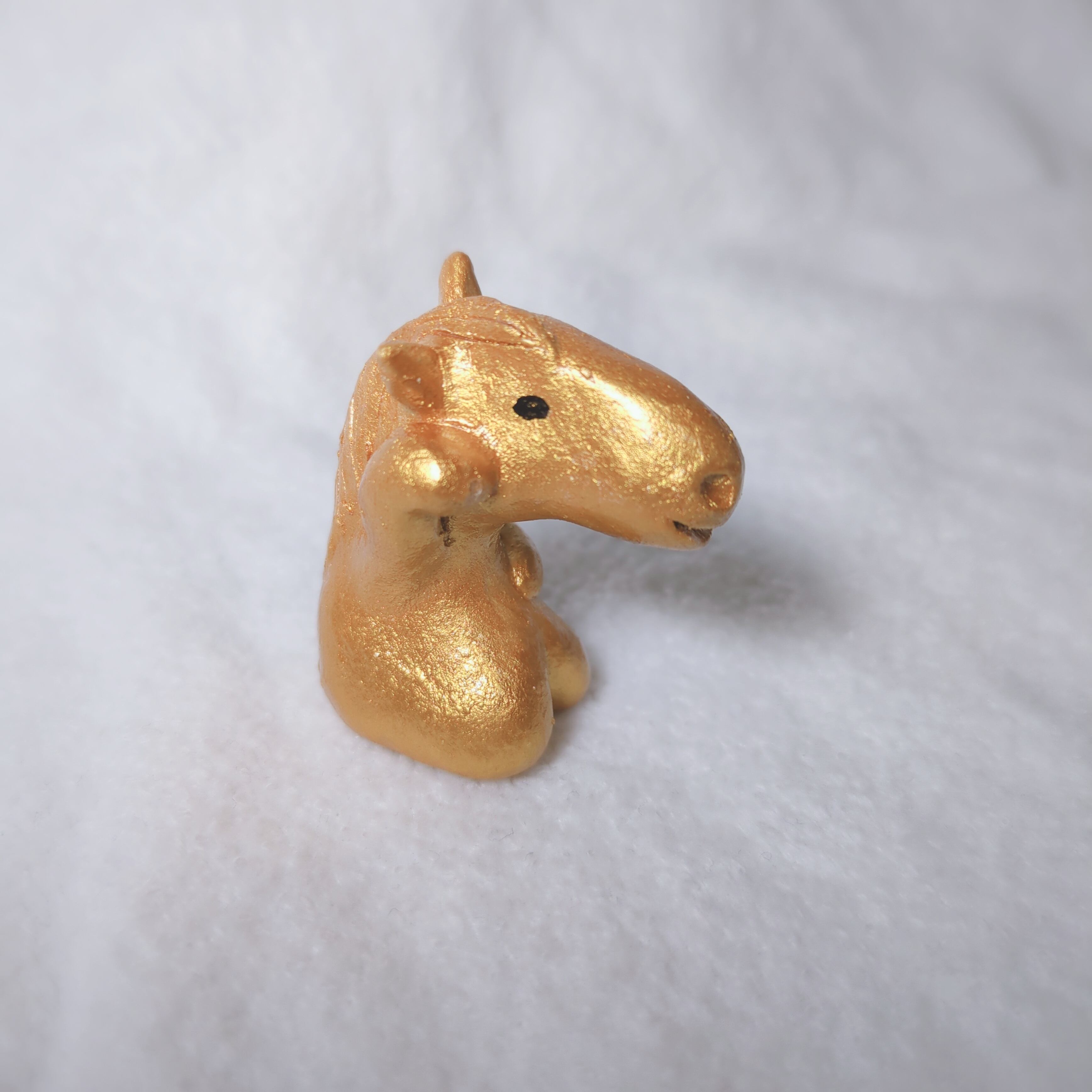 オーブン陶土から生み出したお馬ちゃんを、縁起の良いキラキラ金色で包み込みました!