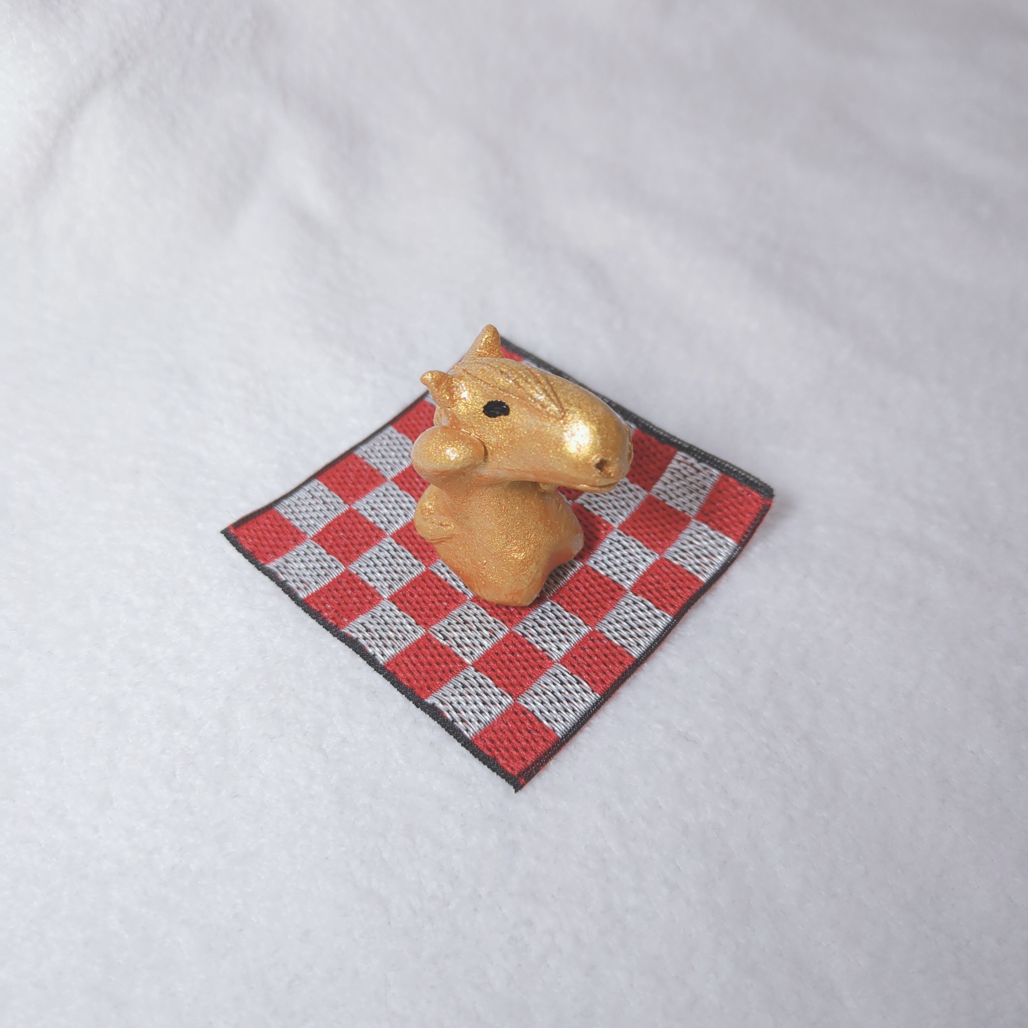オーブン陶土から生み出したお馬ちゃんを、縁起の良いキラキラ金色で包み込みました!
