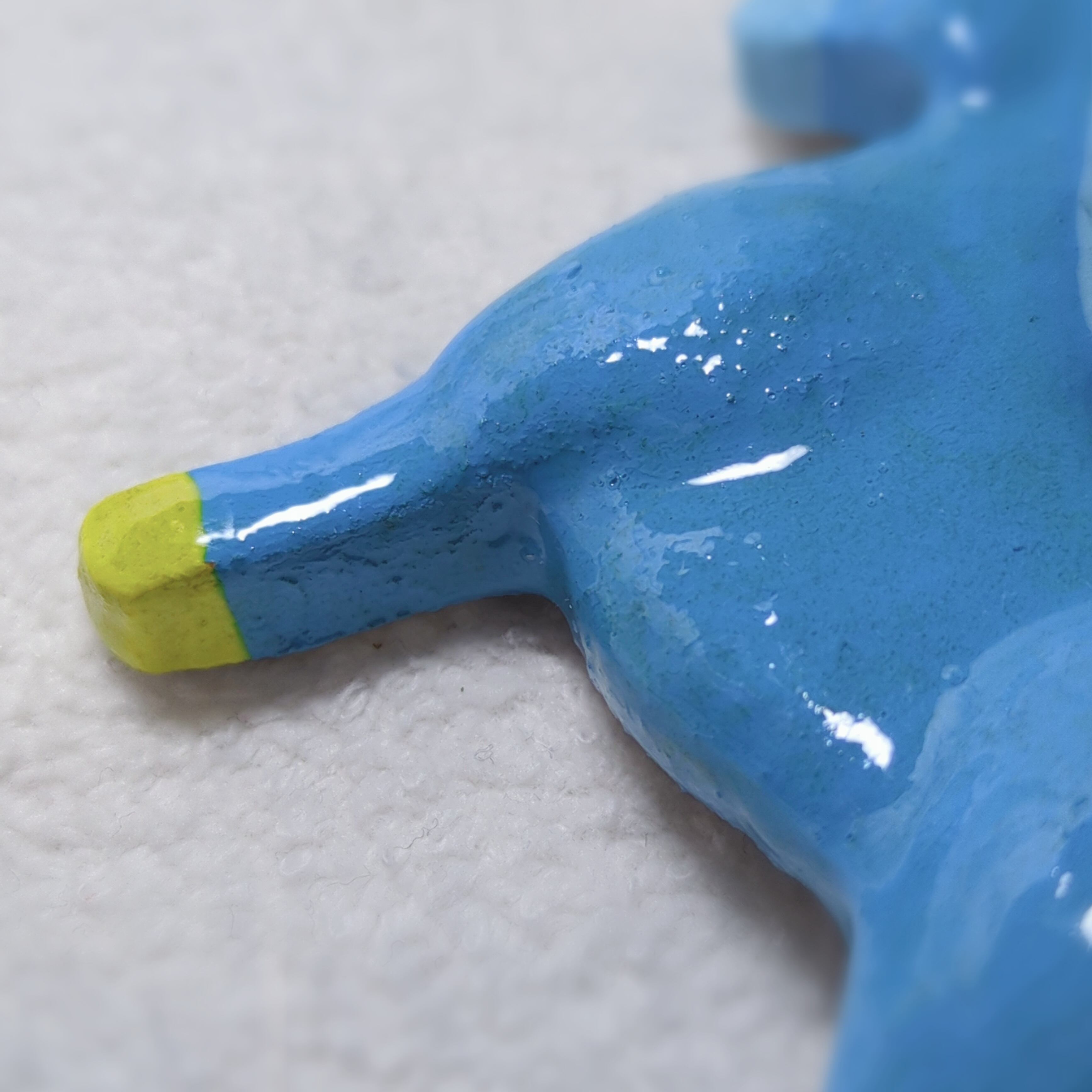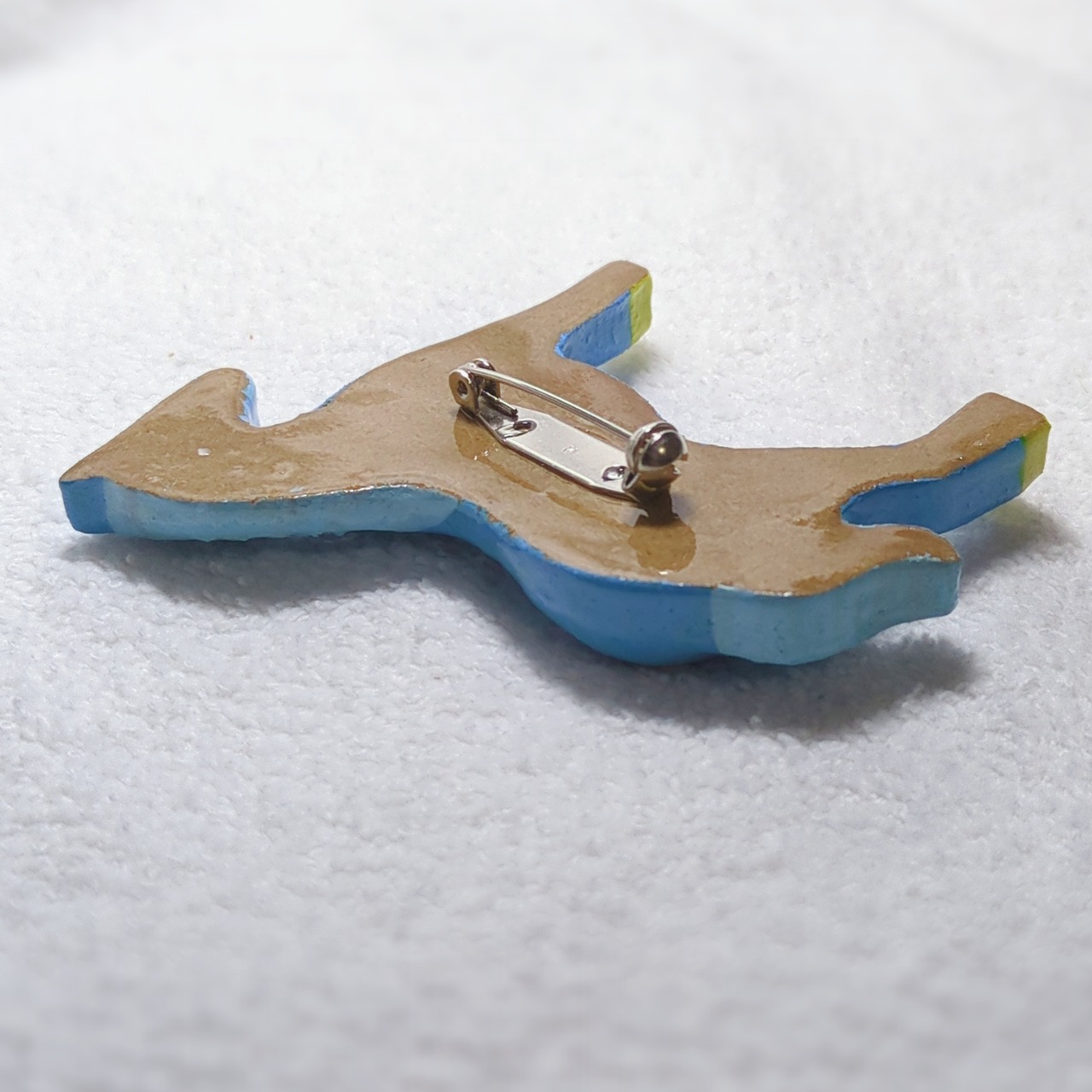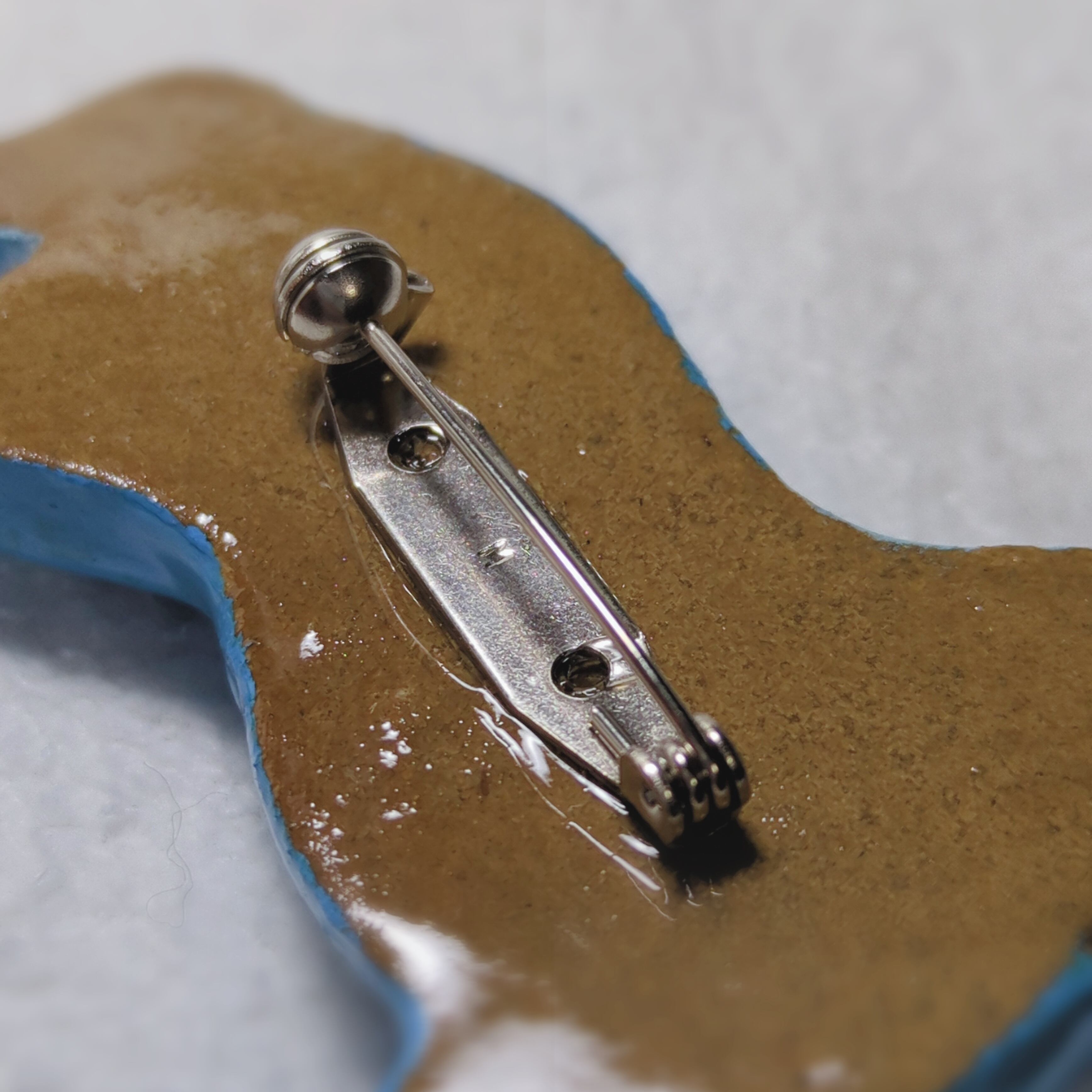 素材:オーブン陶土、アクリル絵の具、UVレジン、真鍮製回転ピンブローチ台