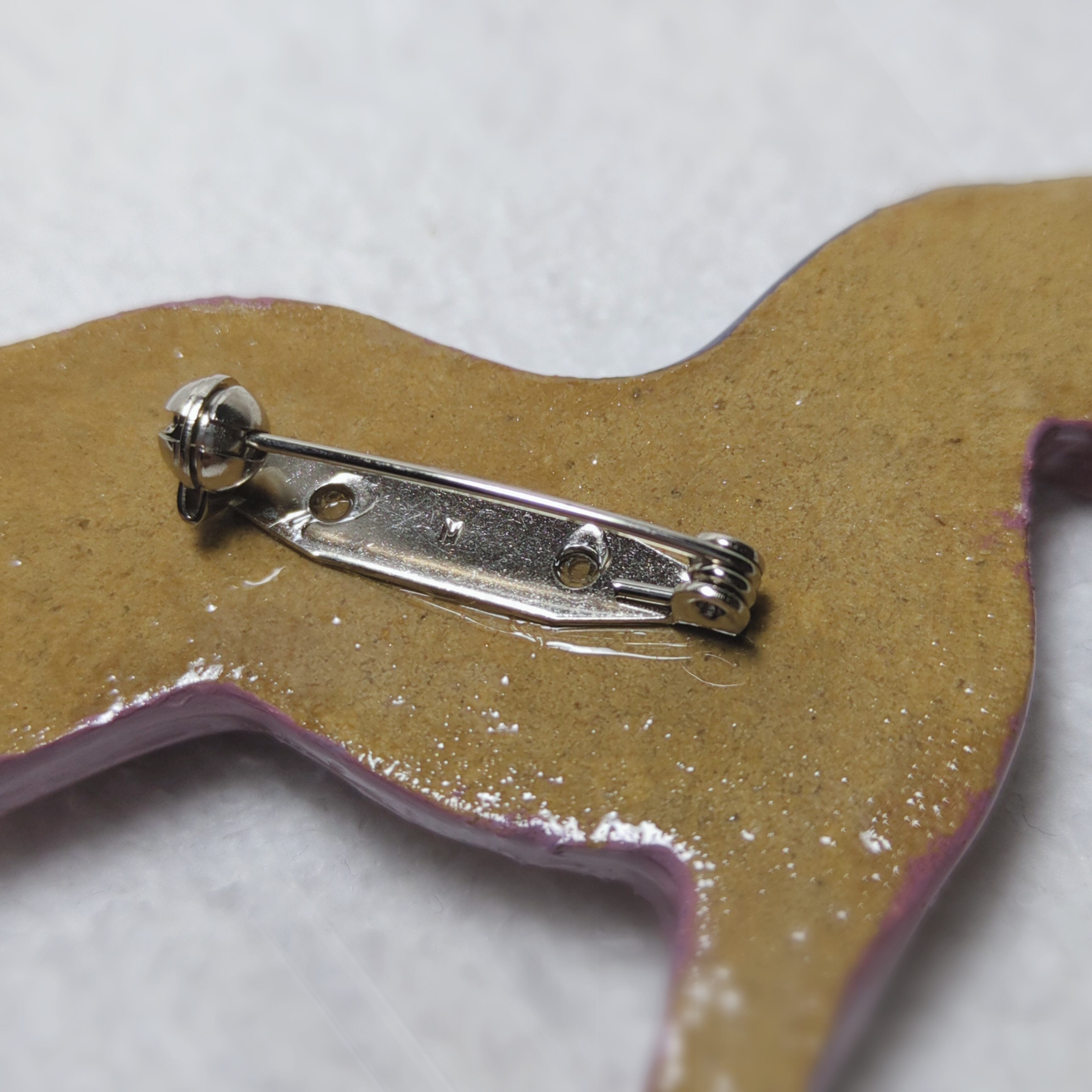 素材:オーブン陶土、アクリル絵の具、UVレジン、真鍮製回転ピンブローチ台