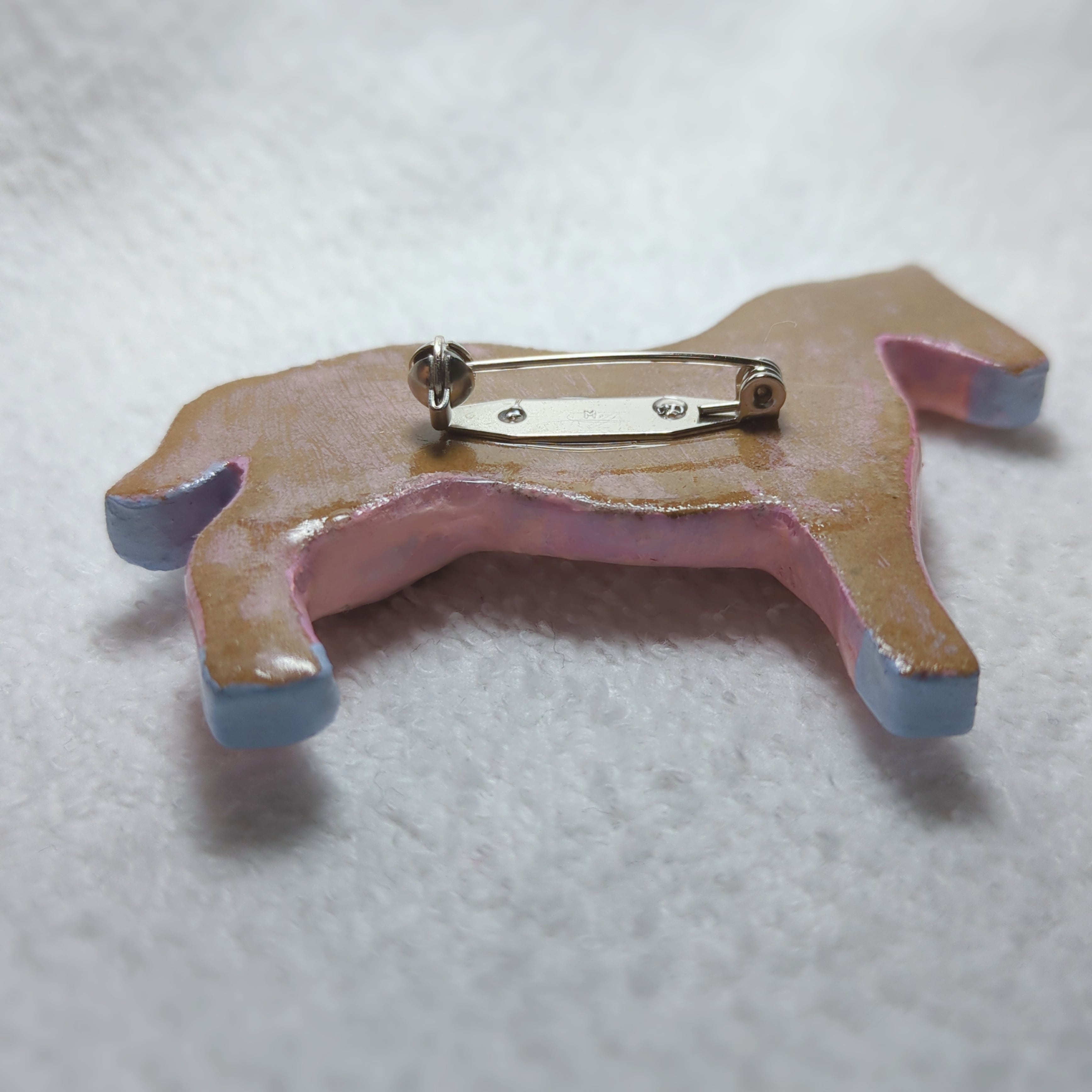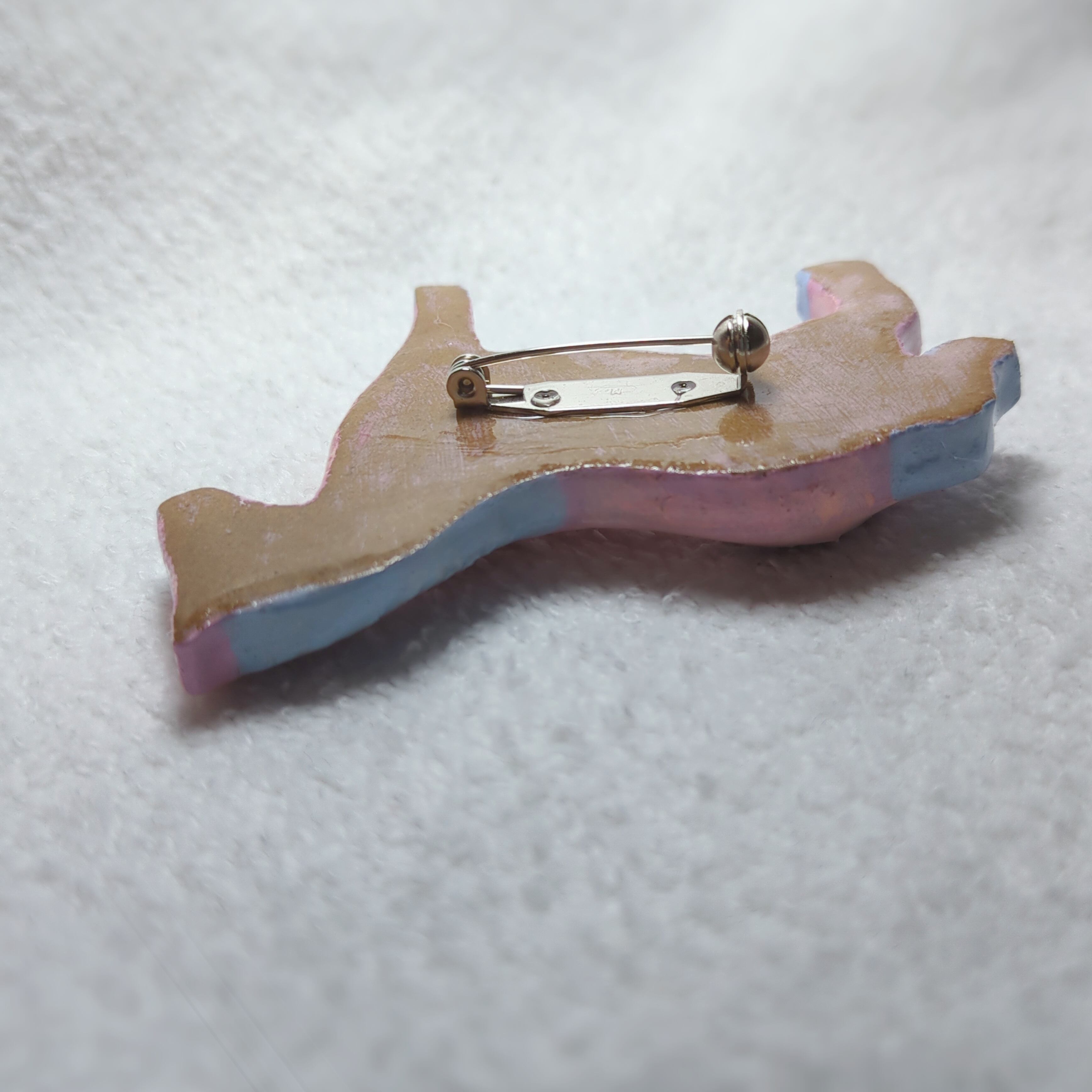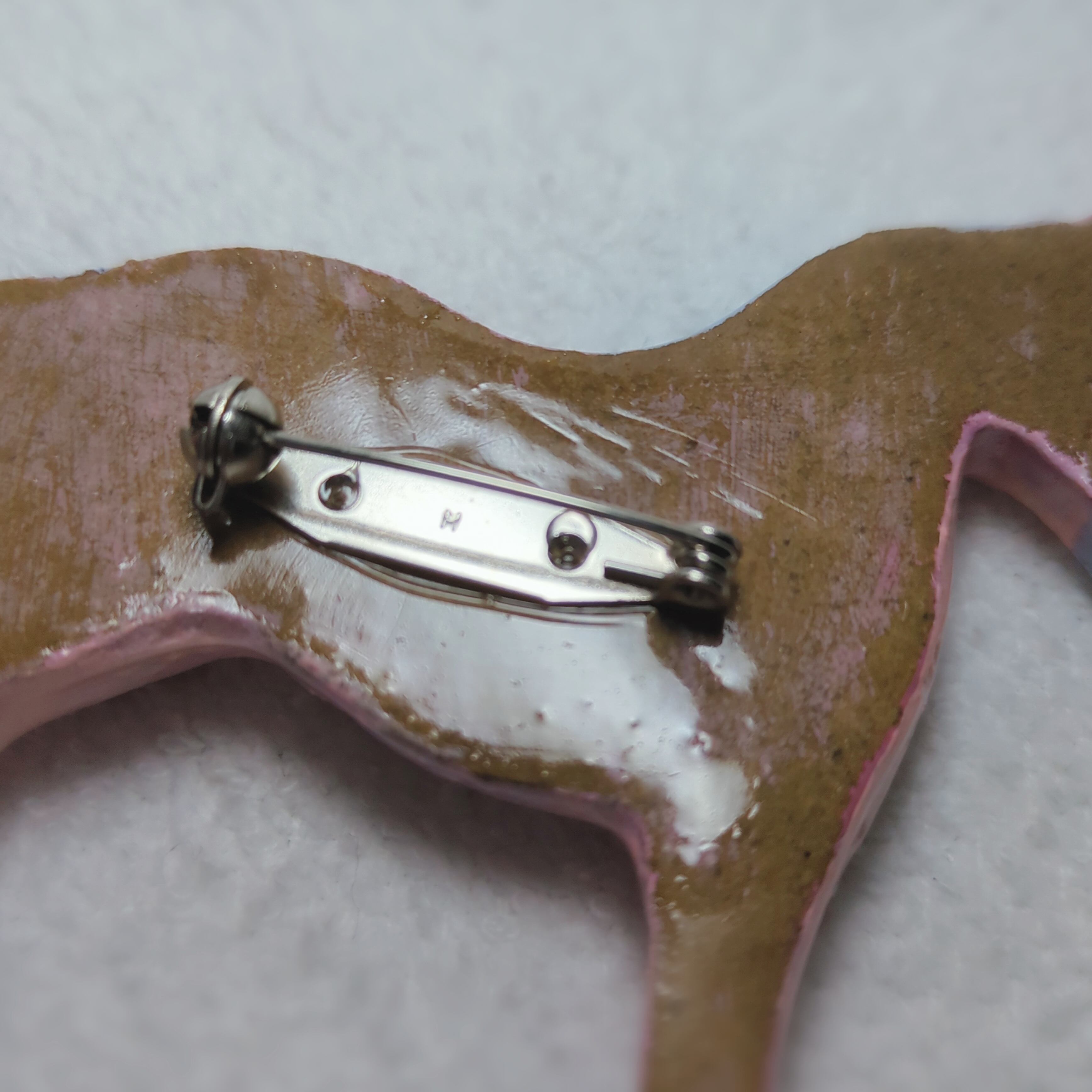 素材:オーブン陶土、アクリル絵の具、UVレジン、真鍮製回転ピンブローチ台