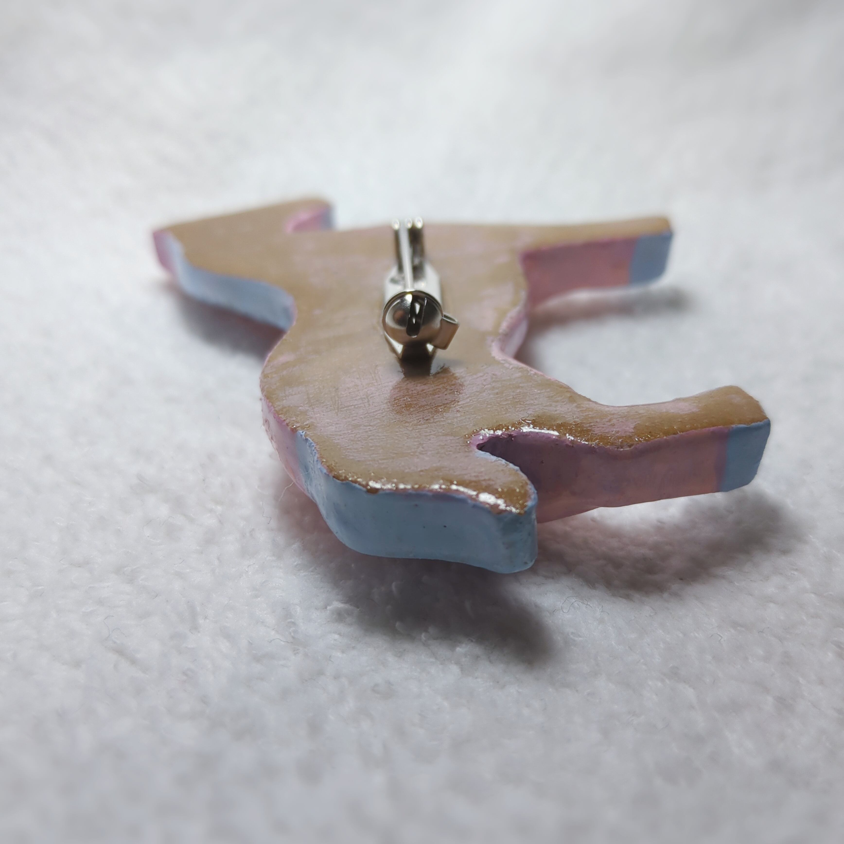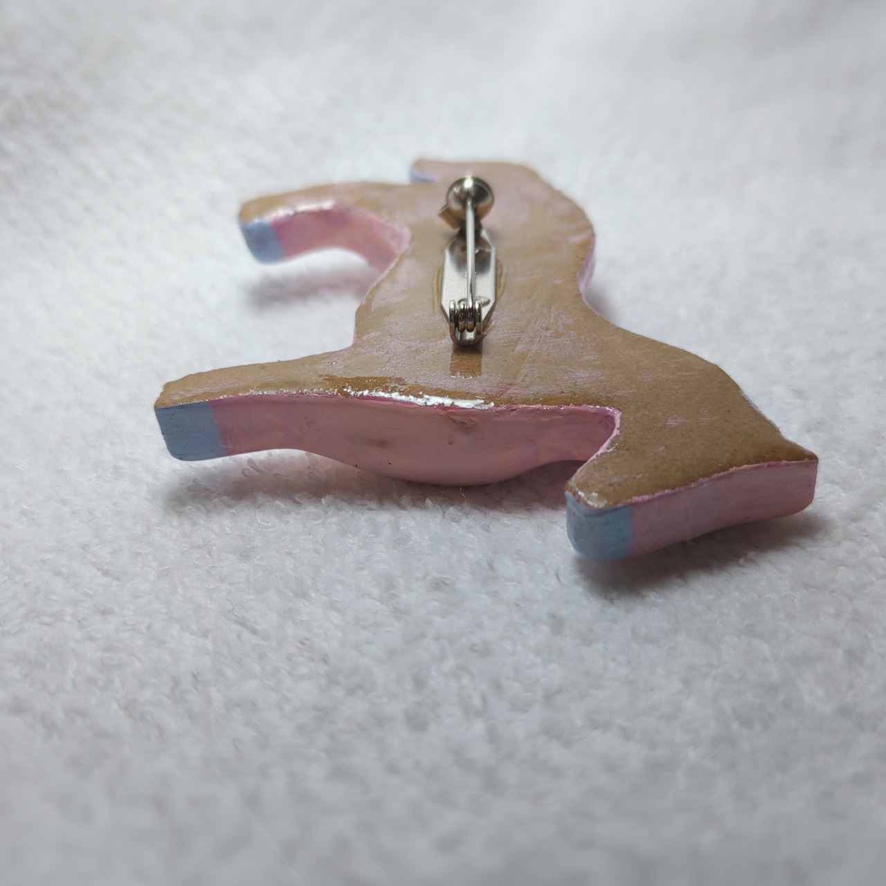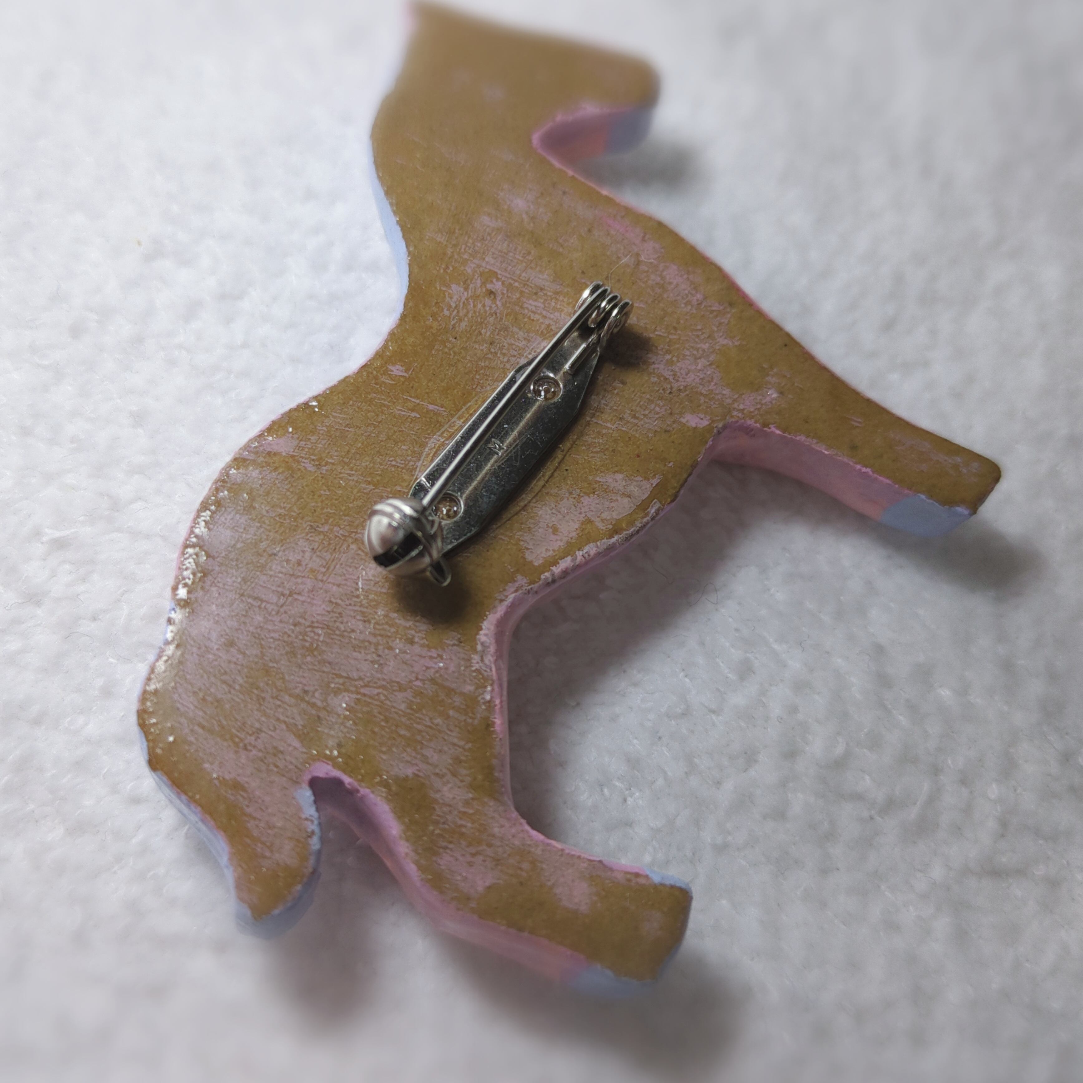 素材:オーブン陶土、アクリル絵の具、UVレジン、真鍮製回転ピンブローチ台