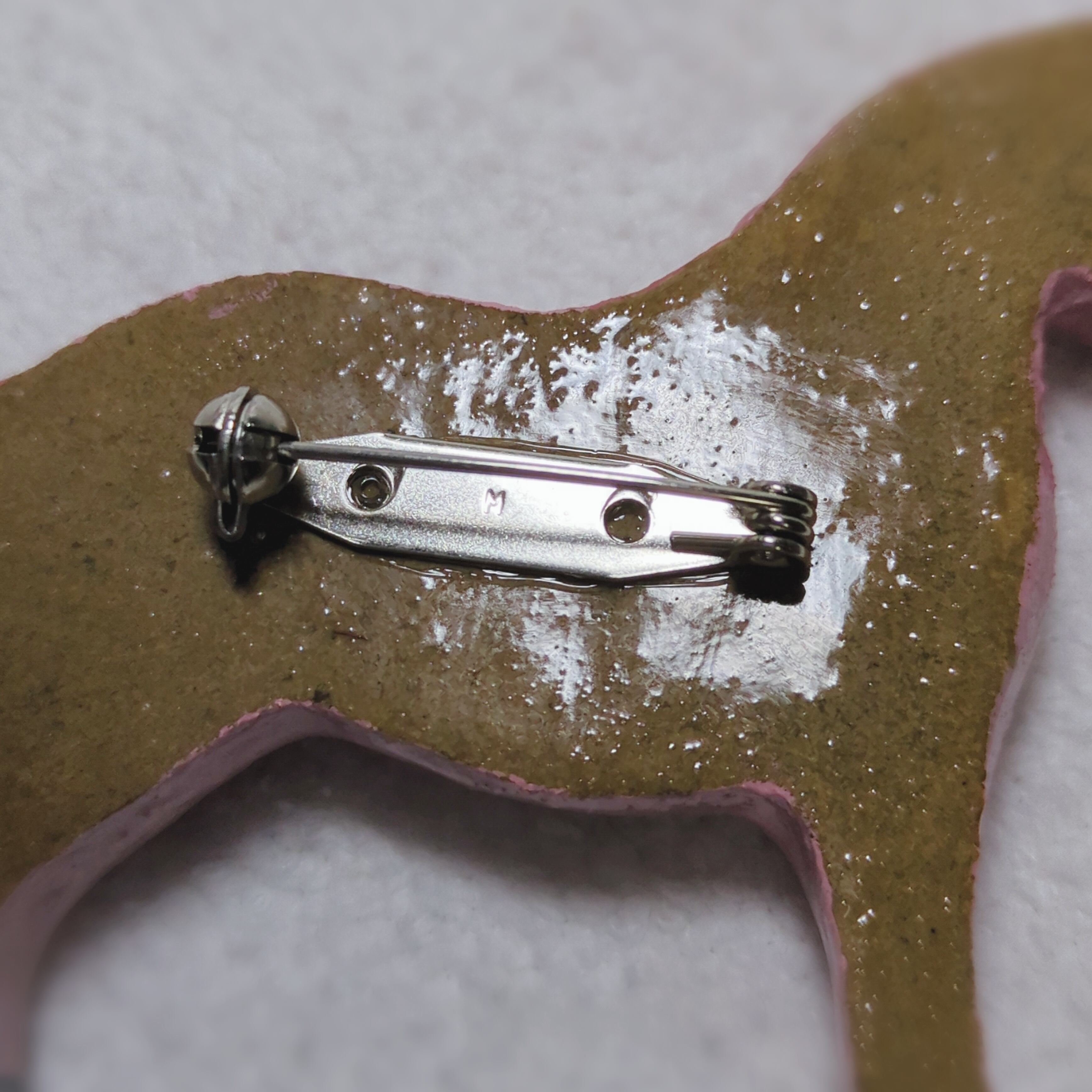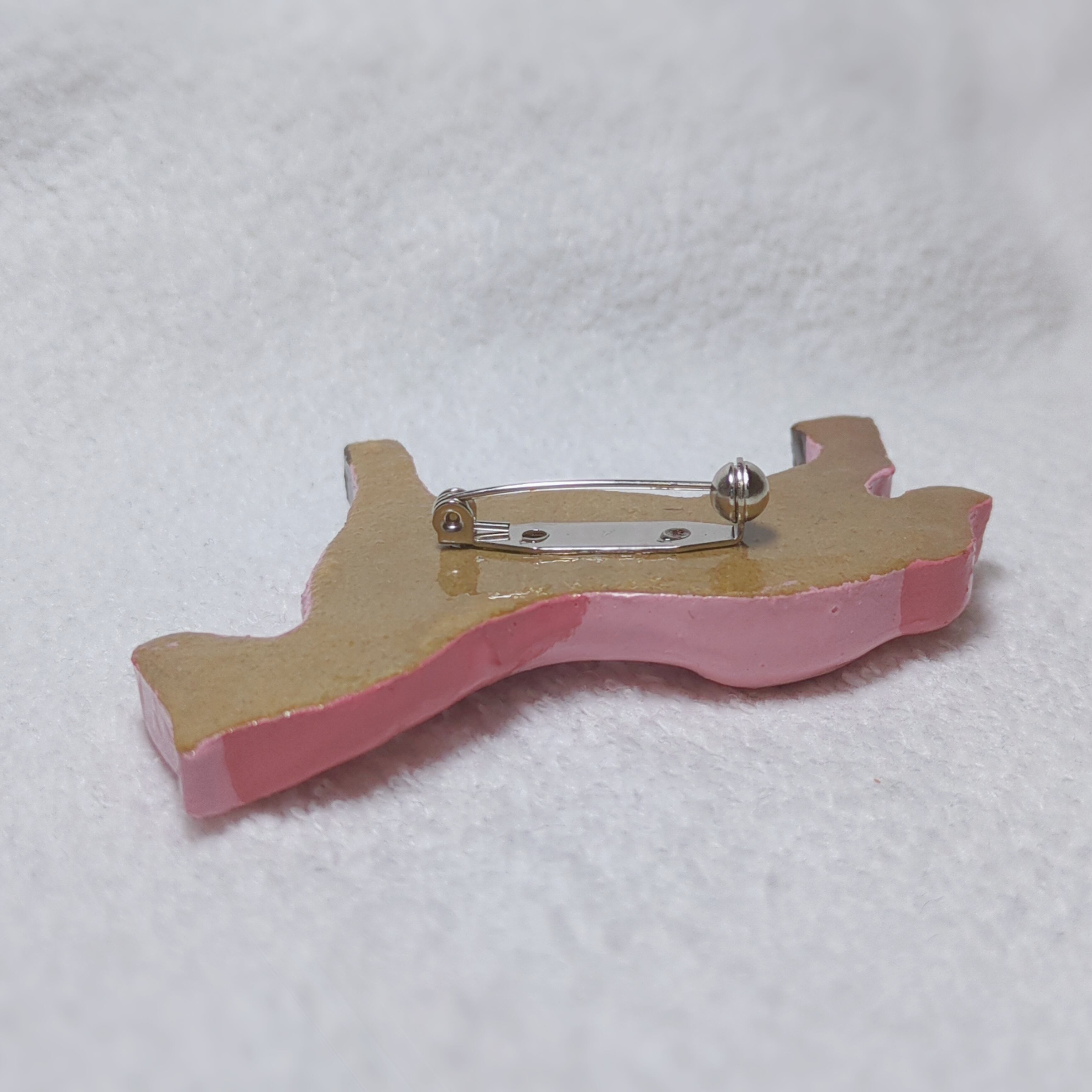 素材:オーブン陶土、アクリル絵の具、UVレジン、真鍮製回転ピンブローチ台