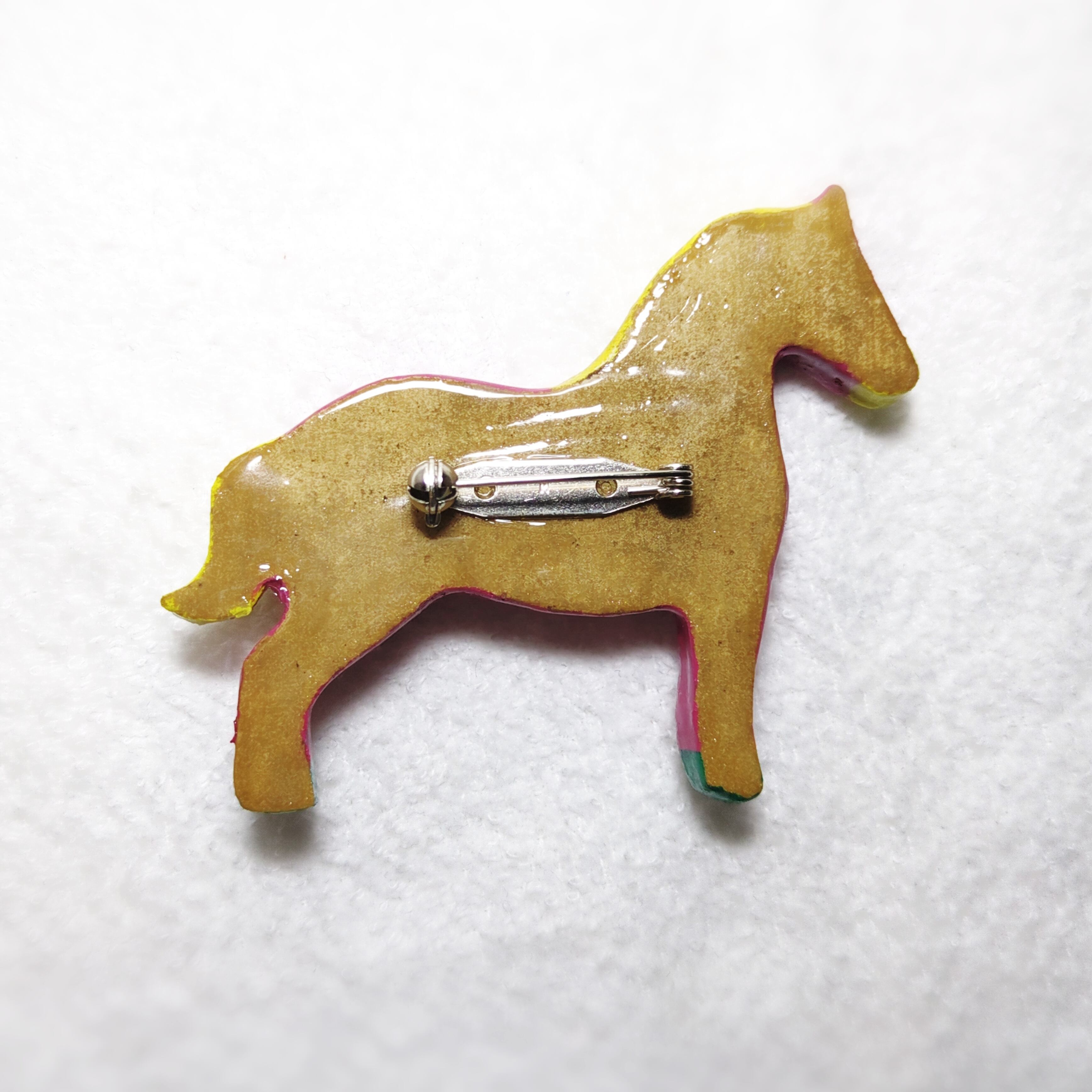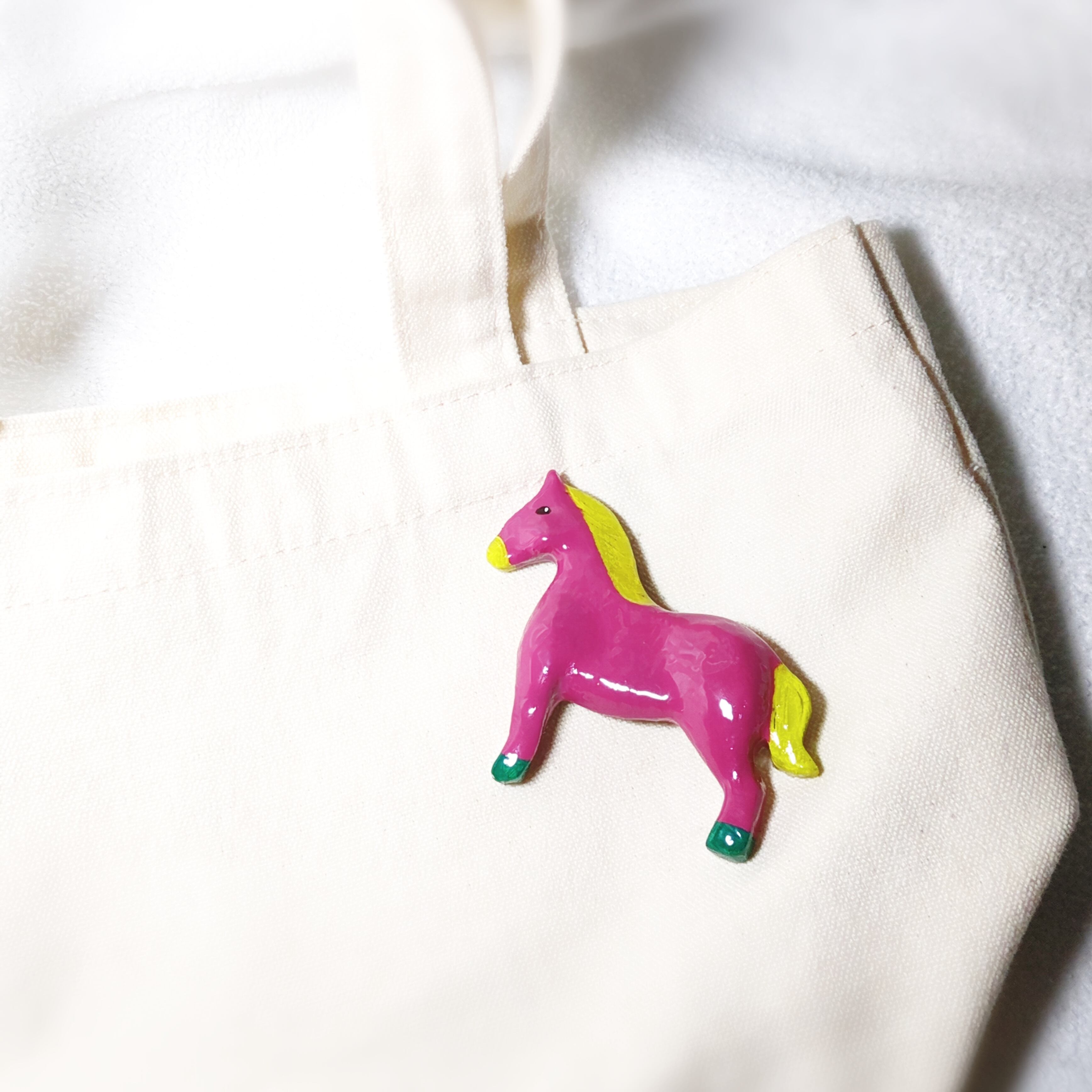 絵本から飛び出した?!☆彡メルヘンなカラフルホースブローチ∈・^ミ┬┬~