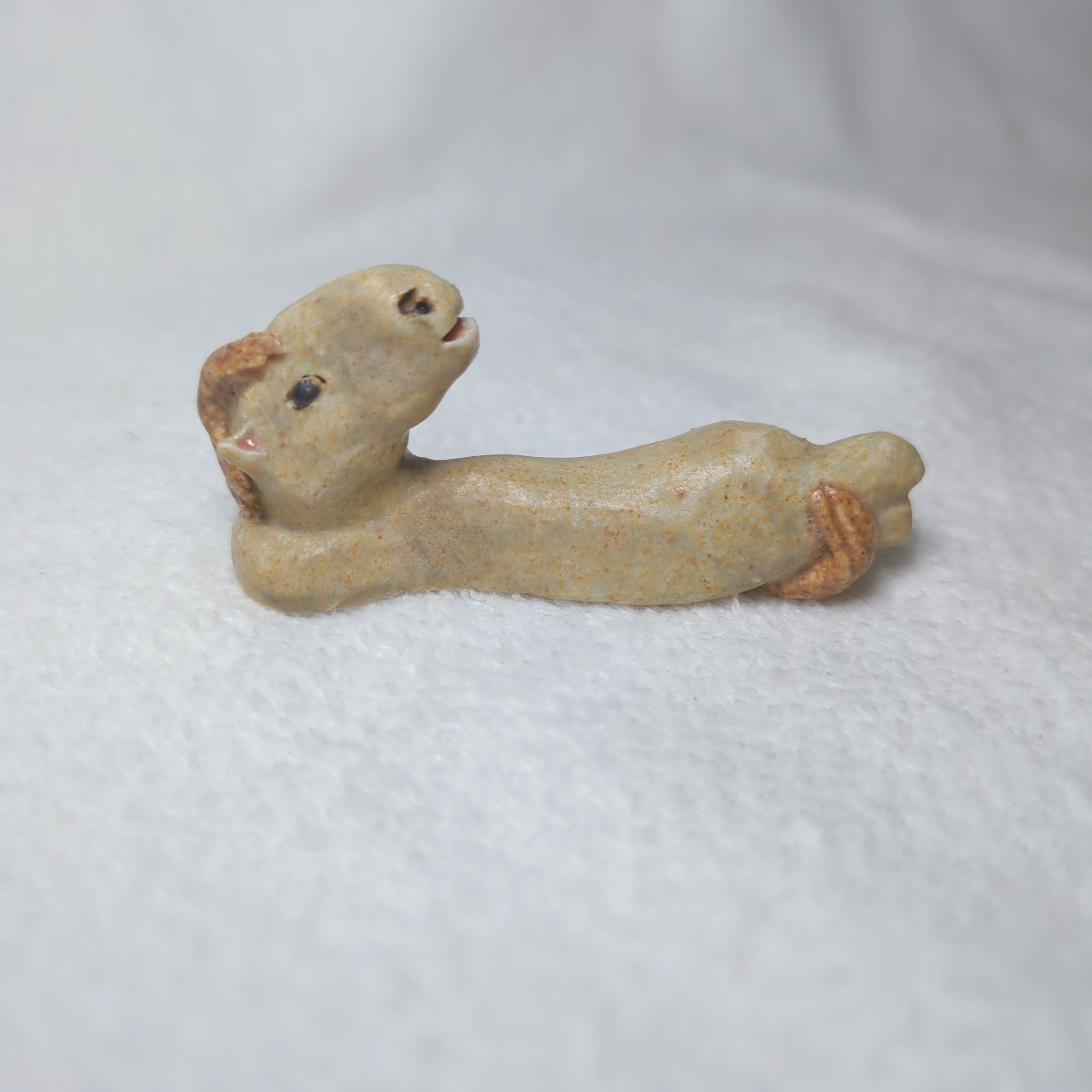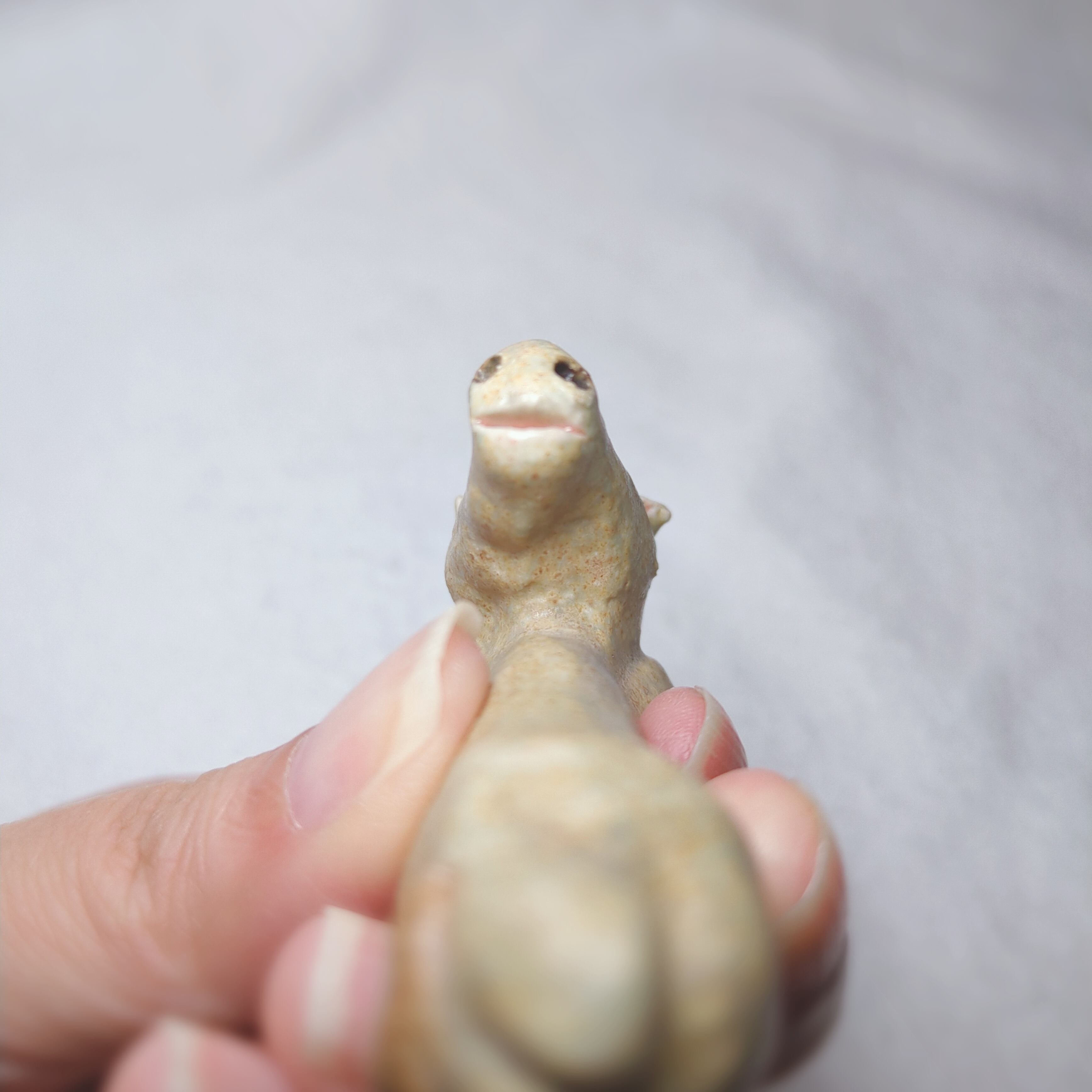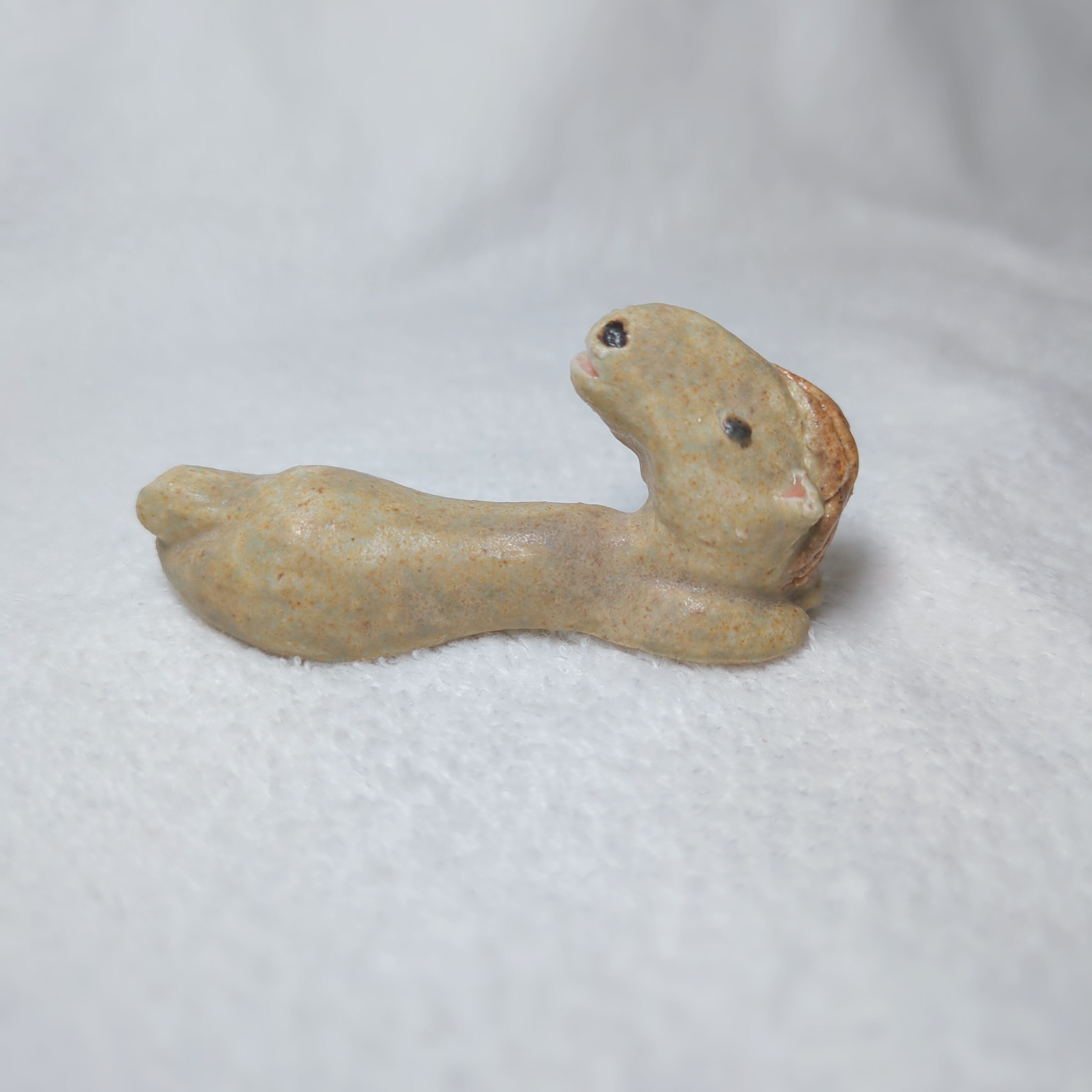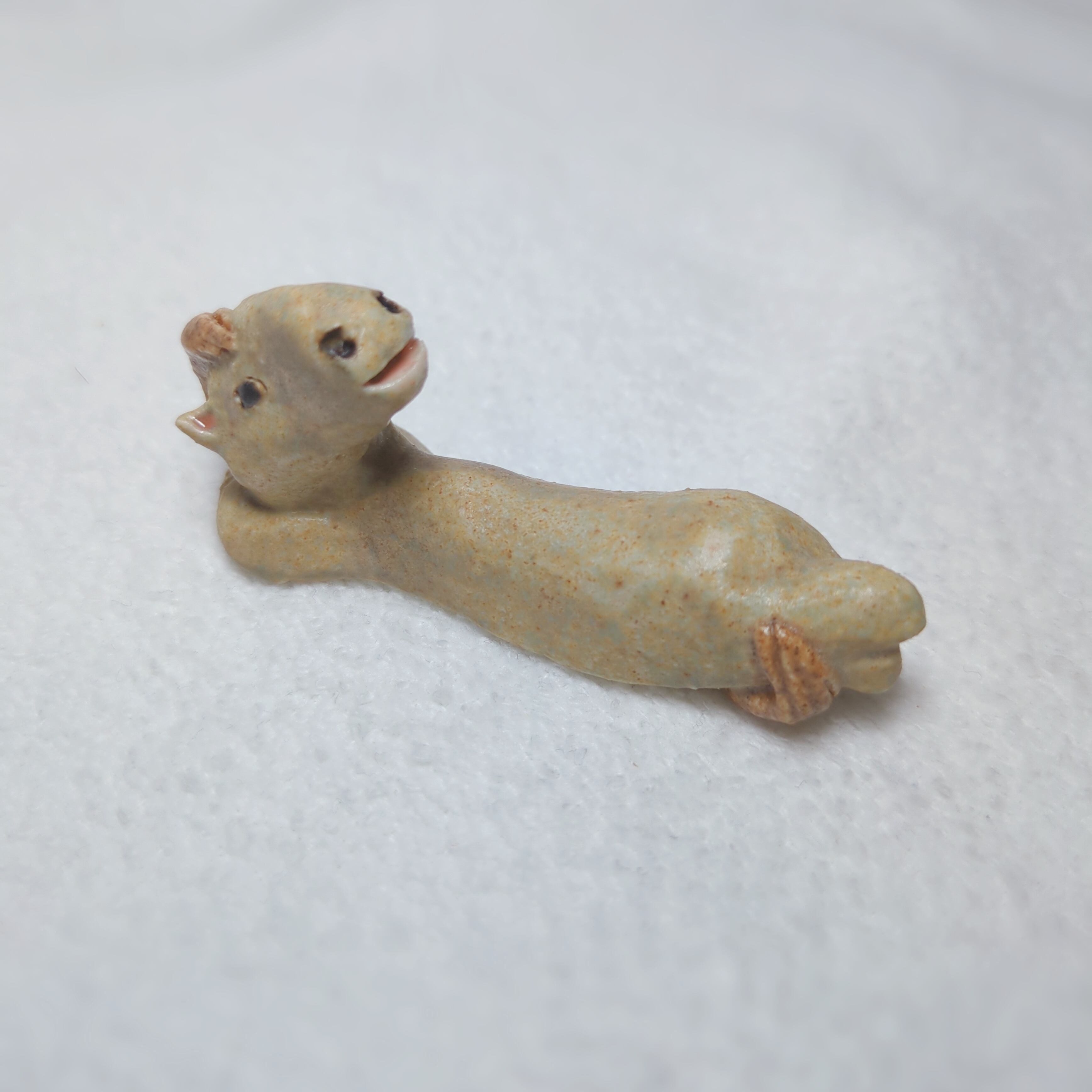 高温の窯で焼いた本格陶芸作品で、陶器らしい柔らかなうぐいす色になりました∈・^ミ┬┬~